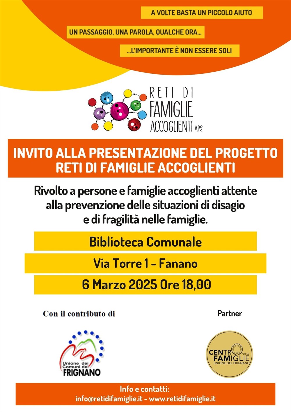 Per informazioni e contatti: www.retidifamiglie.it - info@retidifamiglie.it