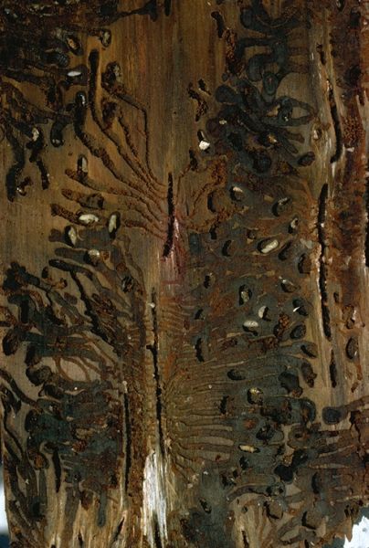 Gli scolitidi sono piccoli coleotteri cilindrici che nei vari stadi di vita scavano sotto la corteccia delle conifere dei complessi sistemi di gallerie.